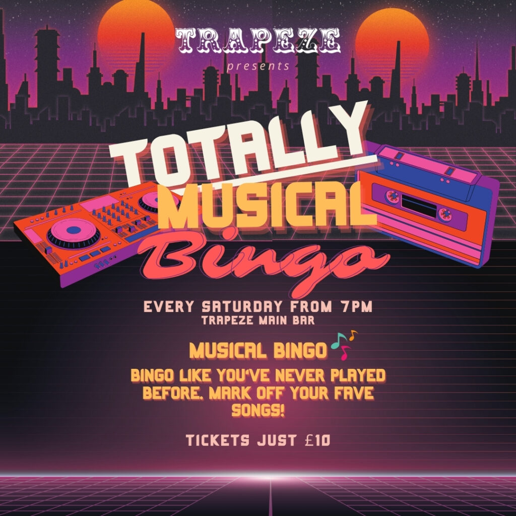 Introducing totally Musical bingo- the game night that blends iconic hits, vibes, and bingo with a twist. Forget boring number calls—here, the beats call the shots. You’ll mark your bingo card as you hear legendary tracks from all the biggest hits from the 80’s, 90’s, 00’s and now!
